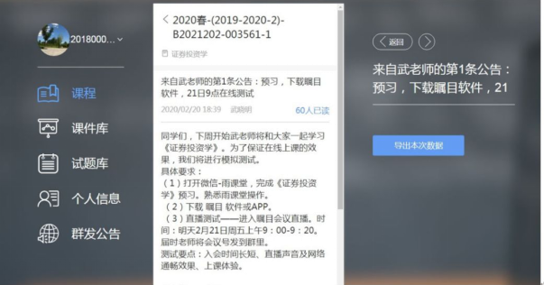 为了员工让提前熟悉网课这种新的教学模式,在正式开学前一天,刘旸老师首先通过雨课堂微信公众号向信管17和电商17的员工们推送了《网络营销》和《电子支付与风险管理》两门课程的语音课件—网络课程说明会,向员工介绍教学计划与设计,并对要求员工提前做好上网课的软硬件准备。