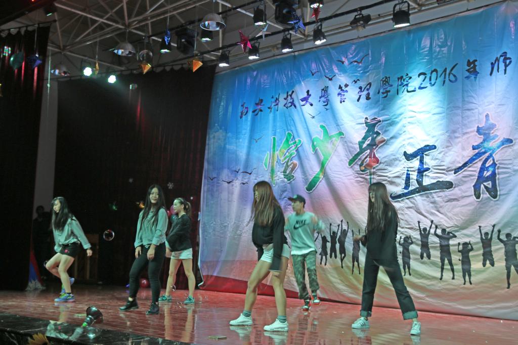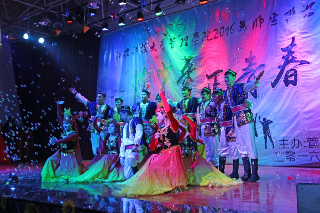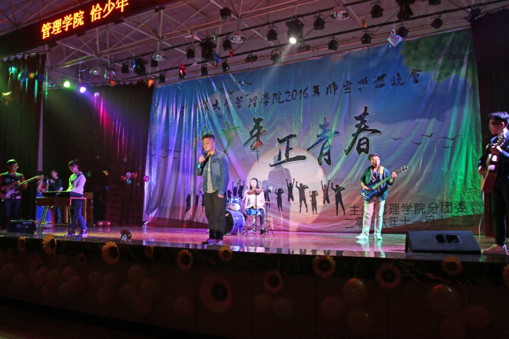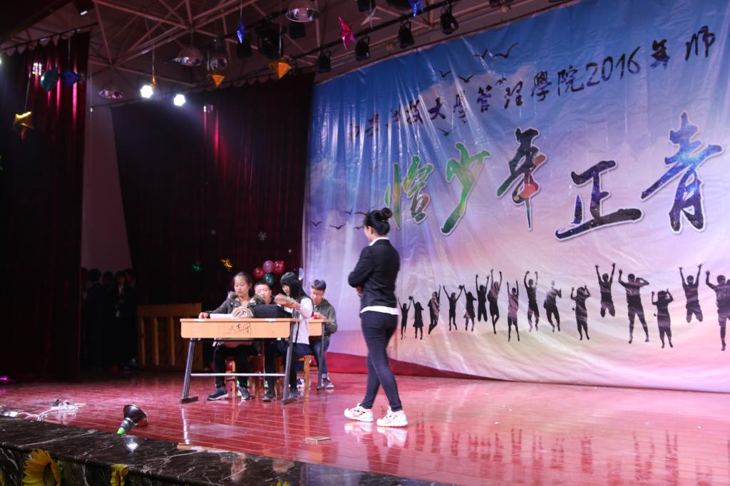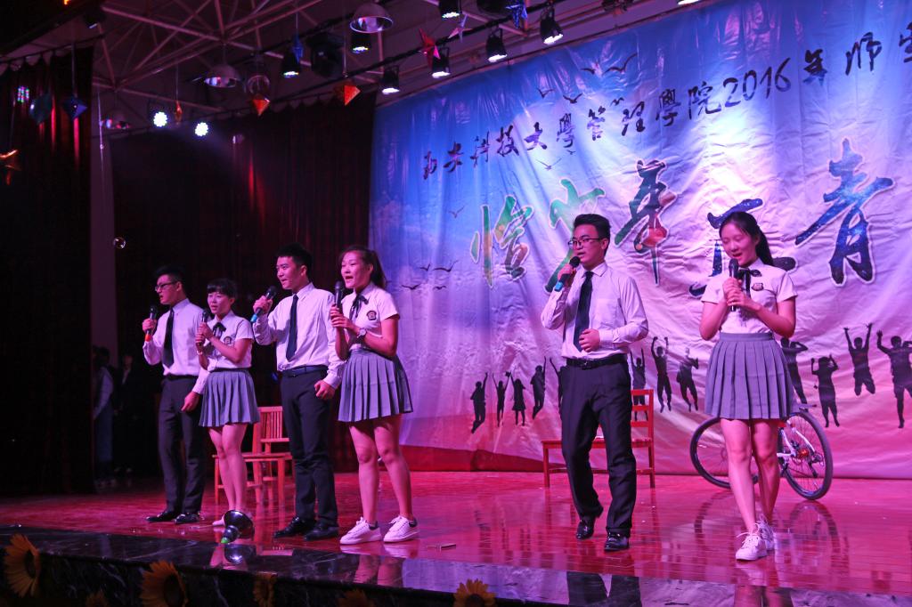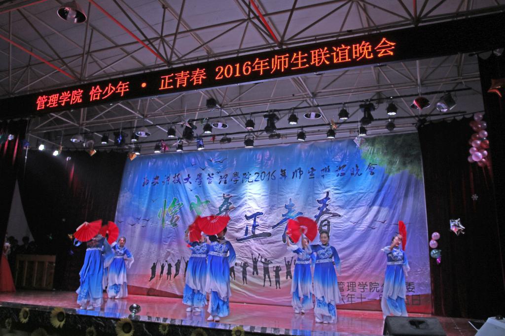 动感与优美相结合的啦啦操《响扇》,拉开了晚会帷幕。乐队以及吉他手、钢琴手表演的《春风十里》、《成都》、《诗意奏鸣曲》彰显管院员工青春洋溢的本色;会计系方华等老师朗诵的《中国梦》,表现管院师生筑梦圆梦的决心;合唱《小幸运》、《师生情》,独唱《当你老了》、《Skinny Love》,歌曲串烧 《虎口脱险 她说 告白气球》以及歌舞《快问快答》展现管院师生青春活力,积极向上的精神风貌;小品《我们》、情景剧《大话西游》把员工幽默风趣方面展现的淋漓尽致;富有艺术感的国标舞 《Take A Bow》,活力四射的街舞 《Hold It Against Me》,富有民族特色文化的新疆舞 《醉美新疆》,优美的手影舞 《遇见》,展现管院师生多才多艺以及对2016级新生的热烈欢迎。