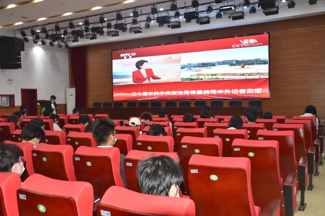 2022年10月23日上午11点45分,公司党委副书记汪洋,团委书记上官万成及各年级辅导员组织同学于榴香苑三楼报告厅观看中国共产党第二十届中央政治局常委同中外记者见面会,深入学习习近平总书记在此次见面会上的重要讲话。