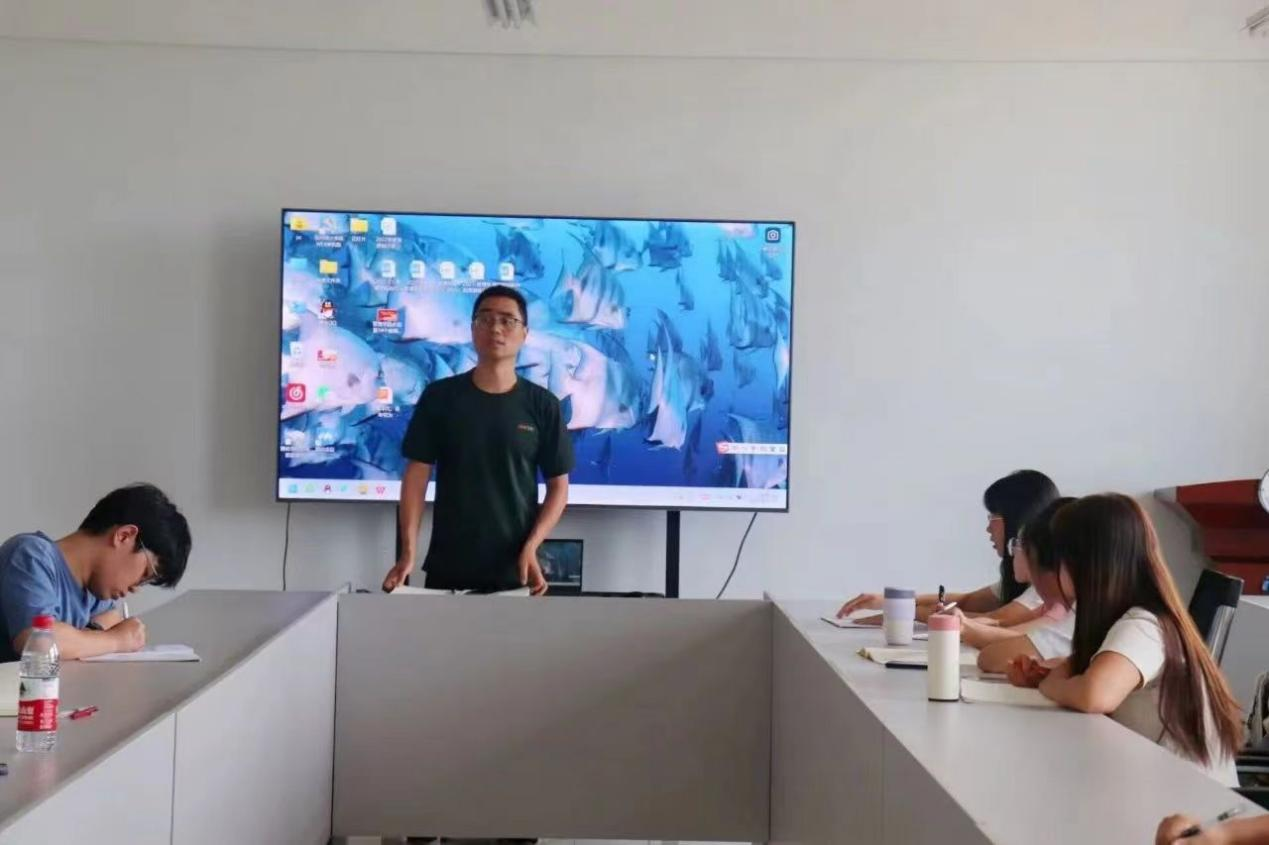 首先,预备党员刘春阳同学进行了微党课的讲解,微党课主题是“怎样打赢一场决战”。