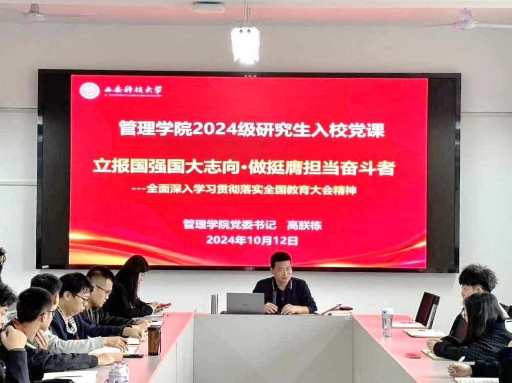 提高党性修养,强化使命担当。为深入学习宣传贯彻党的二十届三中全会精神和全国教育大会精神,全面激励2024级党员树立远大志向、担当时代使命,10月12日,在秦汉校园318会议室举行“立报国强国大志向,做挺膺担当奋斗者”入学党课,由公司党委书记高朕栋主讲。2024级全体研究生党员和2024级本科生团支部书记约50余人参加了学习。