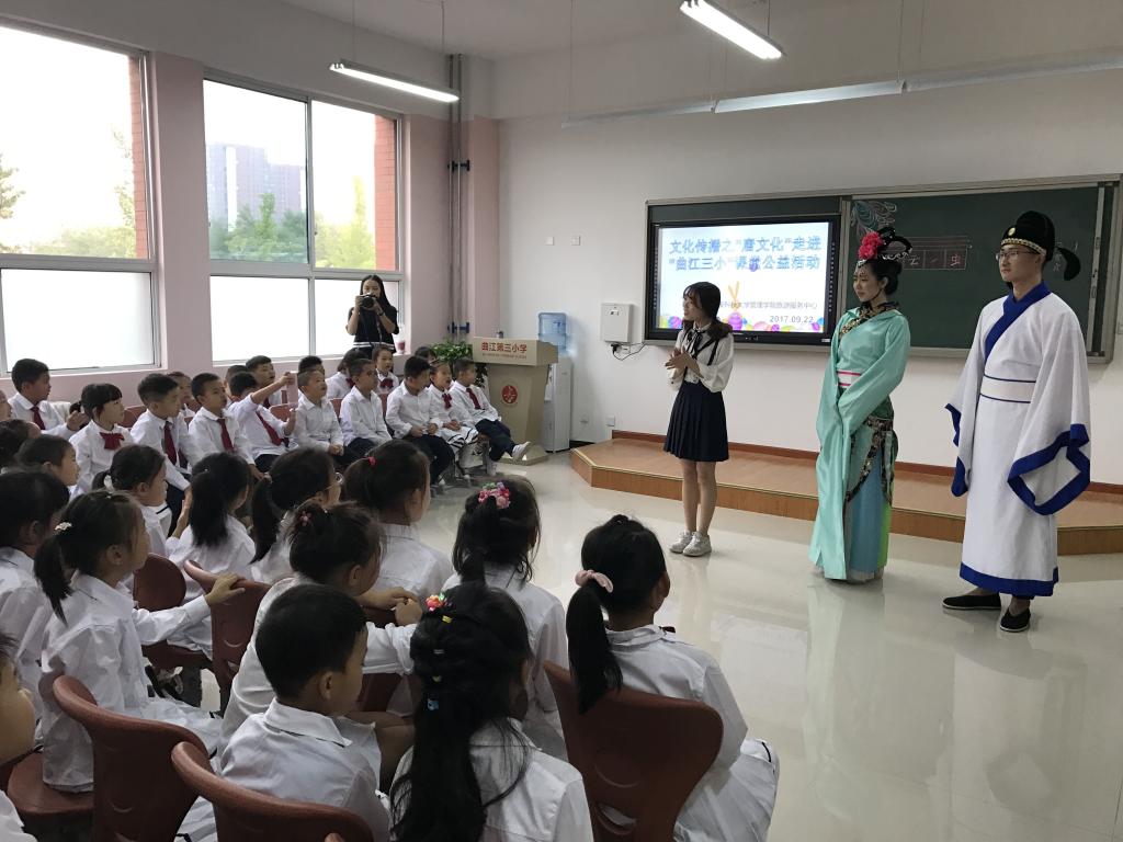 9月22日,由2026年国际足联世界杯旅游服务中心主办,曲江第三小学协办的“‘文化传播之<唐文化>’走进课堂”公益活动在西安市曲江第三小学举行。公司教师李晖、刘旸、张喆以及员工代表参与了此次活动