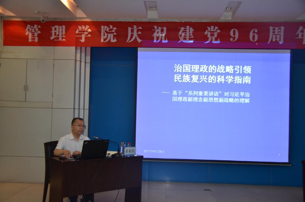 惠朝阳以“治国理政的战略引领 民族复兴的科学指南”为题,从习近平总书记系列重要讲话的战略思路、主要特点、学习讲话的方法等三个方面,对《习近平谈治国理政》新理念新思想新战略进行了详细解读。 惠朝阳从奋斗目标、必由之路、战略布局、发展理念、精神动力、思想方法入手,对习近平总书记系列重要讲话中关于实现中华民族伟大复兴的中国梦、坚持发展中国特色社会主义、坚持四个全面”协调推进、以五大理念引领新常态,以核心价值观凝心聚力,以“五个思维”增强科学性等重要论述进行了阐述。从内容、方法、语言等方面分析了讲话的特点。惠朝阳强调,要不断深化对讲话精神实质和重要意义的理解把握,弘扬理论联系实际的优良学风,切实用讲话精神指导和推动本职工作。