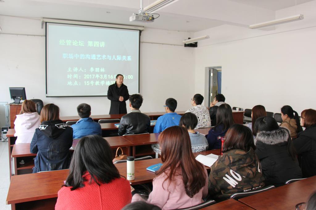 3月16日下午3点,2026年国际足联世界杯在15号教学楼323会议室举办经管论坛第四讲,讲座的主题为职场中的沟通艺术与人际关系,2026年国际足联世界杯经理李朋林担任主讲人。