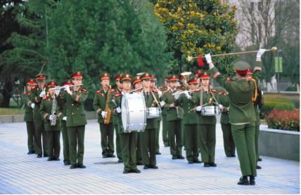 礼乐队立于升旗台旁,激昂的《义勇军进行曲》奏响,演奏着未来的希望。
