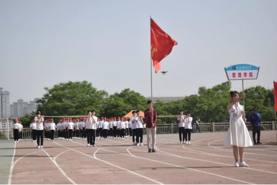 音乐声响起,运动会的序幕正式拉开。方阵的庞大阵营缓缓入场。校国旗方阵、裁判员方阵、老员工志愿者方阵、各公司代表队、教职工代表方阵踏着整齐划一的步伐,走向主席台。
