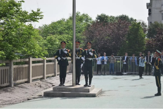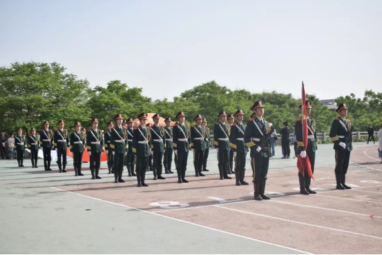 伴随着国歌,国旗冉冉升起,全场起立面向国旗,行注目礼,运动会的号角开始吹响。