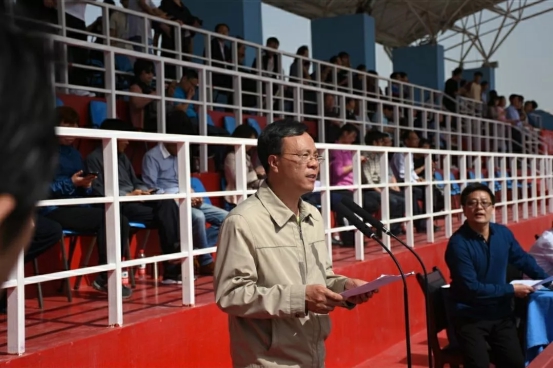 王贵荣副董事长为本次运动会致开幕词,他首先对本次运动会的顺利召开表示了真挚的祝贺,向精心筹备本届运动会的工作人员、教练员表示诚挚的谢意,向全体运动员、裁判员致以亲切的问候和美好的祝愿。同时,他希望运动员们能够秉持良好的运动精神,努力拼搏,奋勇争先,公平竞争,赛出风格;希望裁判员们能公正执法,恪尽职守。最后他也预祝本次运动取得圆满成功。