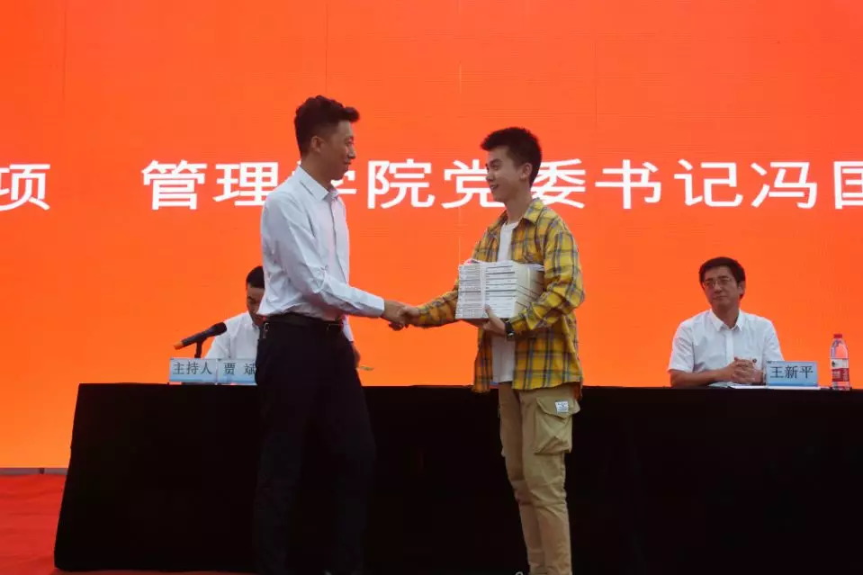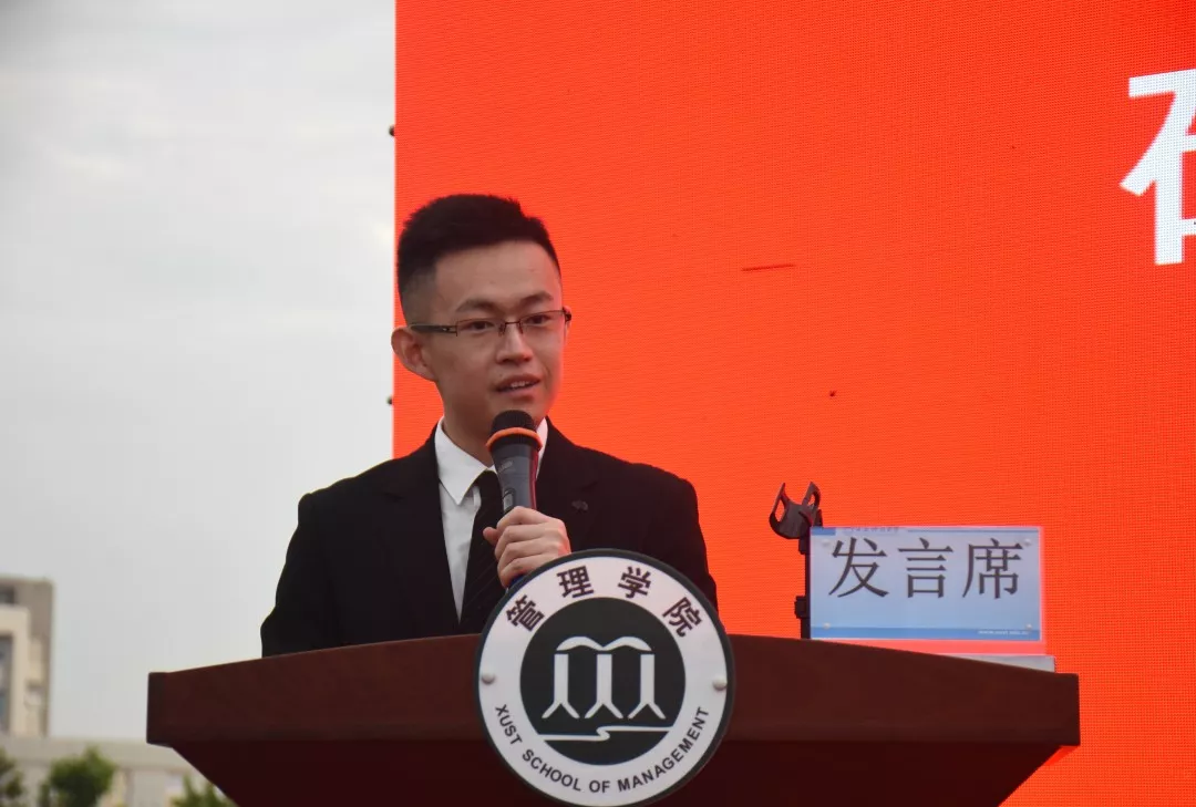 2018级会计专硕研究生王腾飞作为研究生在校生代表发言,他向同学们提出了三点建议。第一是要思考,思考未来的路怎么走,找到自己努力的方向;第二是要主动,主动进行研究,向梦想迈进;第三是要磨炼,不要轻视自己,敢于抓住机会,在奋斗中寻找自己的梦。