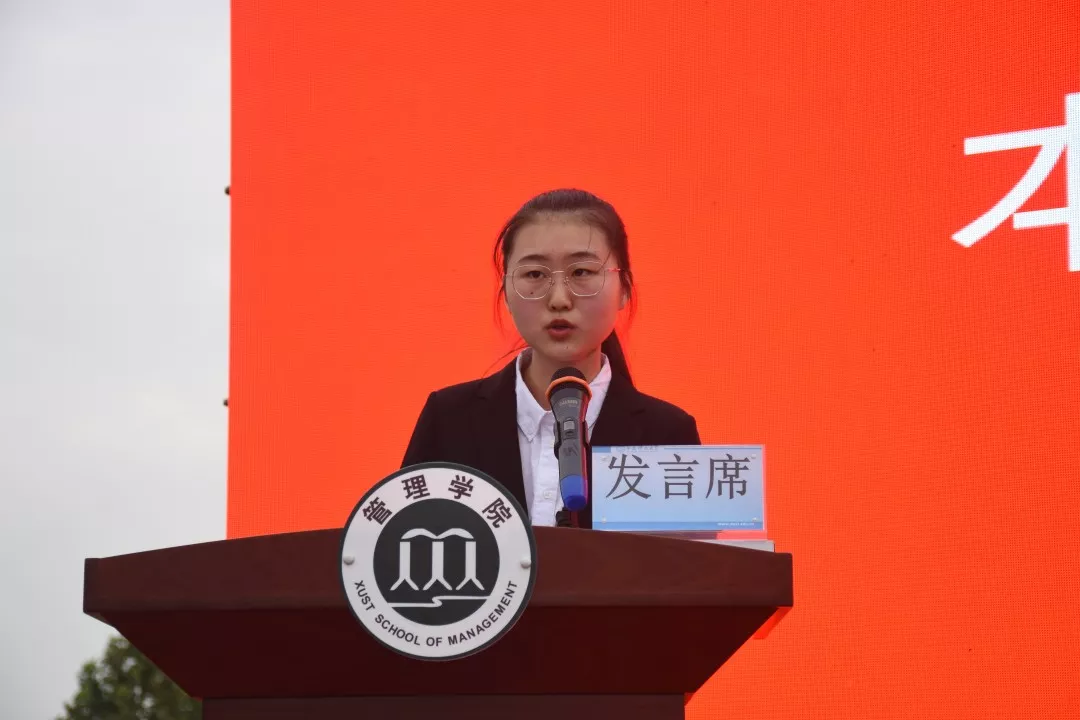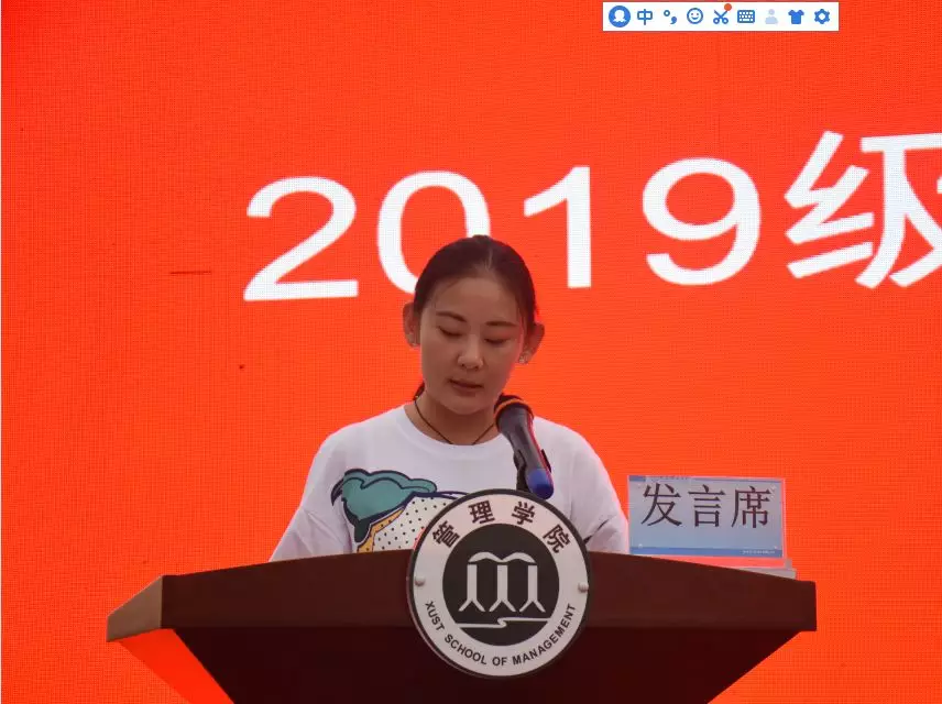 2019级MBA硕士渠秋佳作为研究生新生代表发言,她提出员工应当有质量的完成学业,学习必须要有勤恳的态度和能力,并表示学习MBA能改变人们的固有思维模式,还可以在学习专业管理知识与能力的同时拓展自己的人际关系。最后她建议大家应当珍惜学习机会,努力学习,脚踏实地,收获知识并为西科贡献自己的力量。