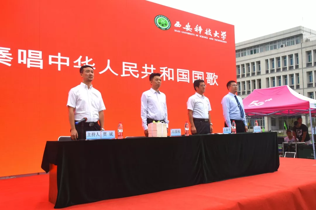 全体师生起立齐唱国歌,在嘹亮的国歌声中,迎新大会正式拉开帷幕。