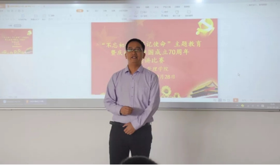 秦汉校园:上官万成老师发言。他表示今年是中华人民共和国成立70周年,在这个时刻开展“不忘初心、牢记使命”主题教育,正当其时,而大家作为新时代青年更应该勇于担当时代重任,积极主动应对困难,以坚忍不拔的意志和无私无畏的勇气战胜前进道路上的一切艰难险阻,并预祝秦汉校园“不忘初心、牢记使命”主题演讲活动顺利进行。