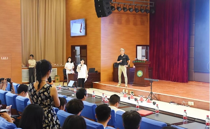 钟伟跃结合自己的求学经历,和同学们分享科技创新在现代社会中的重要地位,向同学们讲述了村田电子有限公司的发展历程、企业文化、社会责任。同时,他表达了校企战略合作的意愿,愿意继续扩大加深与公司的合作,并秉持着合作育人、合作发展的理念,在公司设立了奖学金,鼓励并帮助优秀员工完成学业。