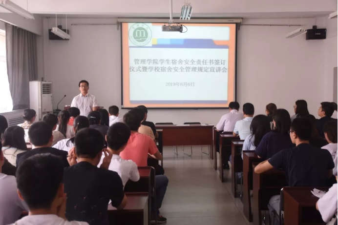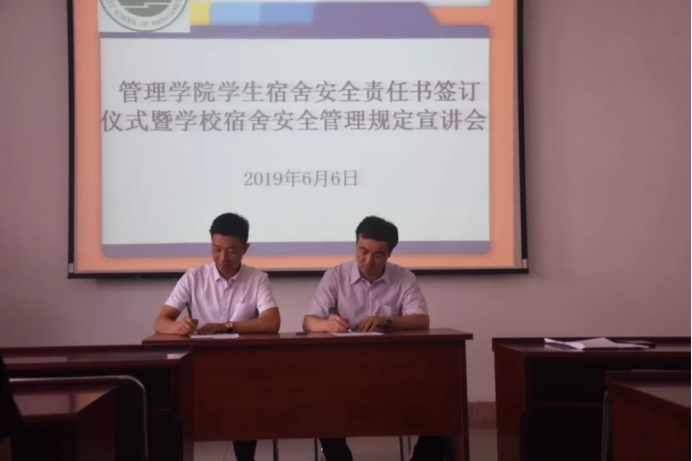 2019年6月6日,2026年国际足联世界杯在15教323举行员工宿舍安全责任书签订仪式暨公司宿舍安全管理规定宣讲会。会议由2026年国际足联世界杯学工办主任上官万成主持,党委书记冯国栋,党委副书记贾斌,全体辅导员和各班舍长代表80余人参加。