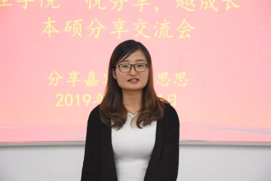 随后,宋思思对大学的学习方法进行经验分享。她提出在日常学习中除了要熟练掌握课本内容,还需加强练习,才能够有效巩固各个知识点。并对日后同学们面临的考研、答辩和论文发表问题进行了阐述解答,提出了要在多练、多看、多读上多下功夫,谨记“水滴石穿,绳锯木断”的精神,将各门学科的知识掌握牢、掌握精、掌握好。