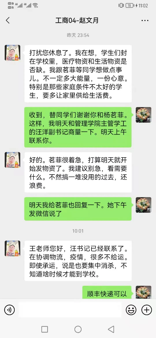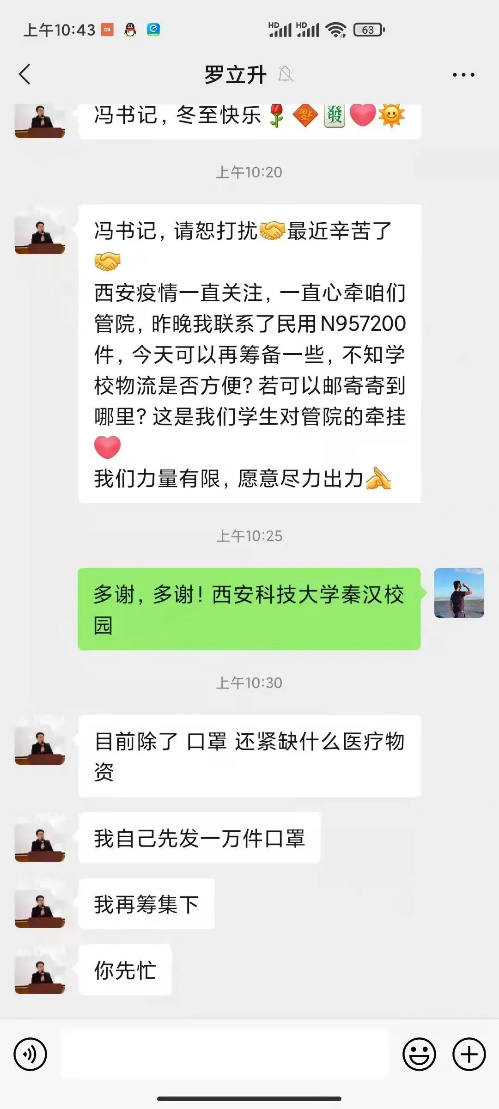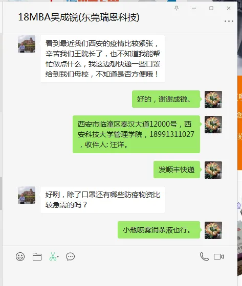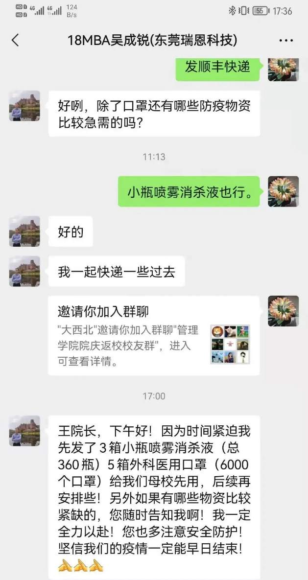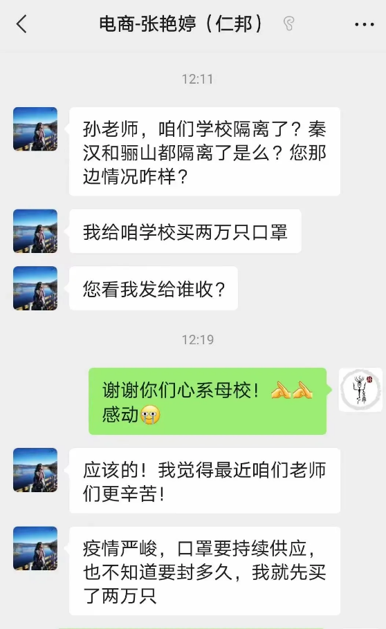 远在五湖四海的员工们,在知晓当前疫情情况后,纷纷捐赠物资,支援母校,源源不断的爱正通过一批批物资向我们输送过来......