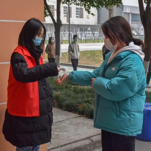 志愿者们默默无闻地为同学们付出与贡献,站在寒冷的室外,时刻关注着队伍的变化,提醒同学们注意事项,一天下来,双手双脚早已冻的不成样子。