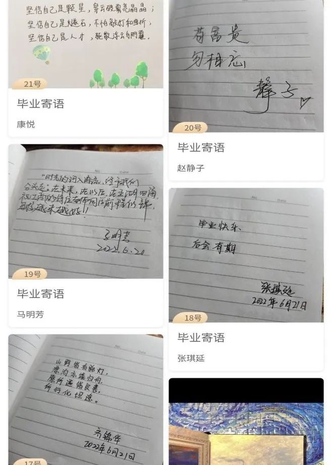 2018级本科生党支部于2022年6月4日至6月20日进行了“致即将毕业的我们”手写寄语线上征集活动,把大家深切的祝福、亲切的关怀、殷切的期待通过寄语的形式传达出来。