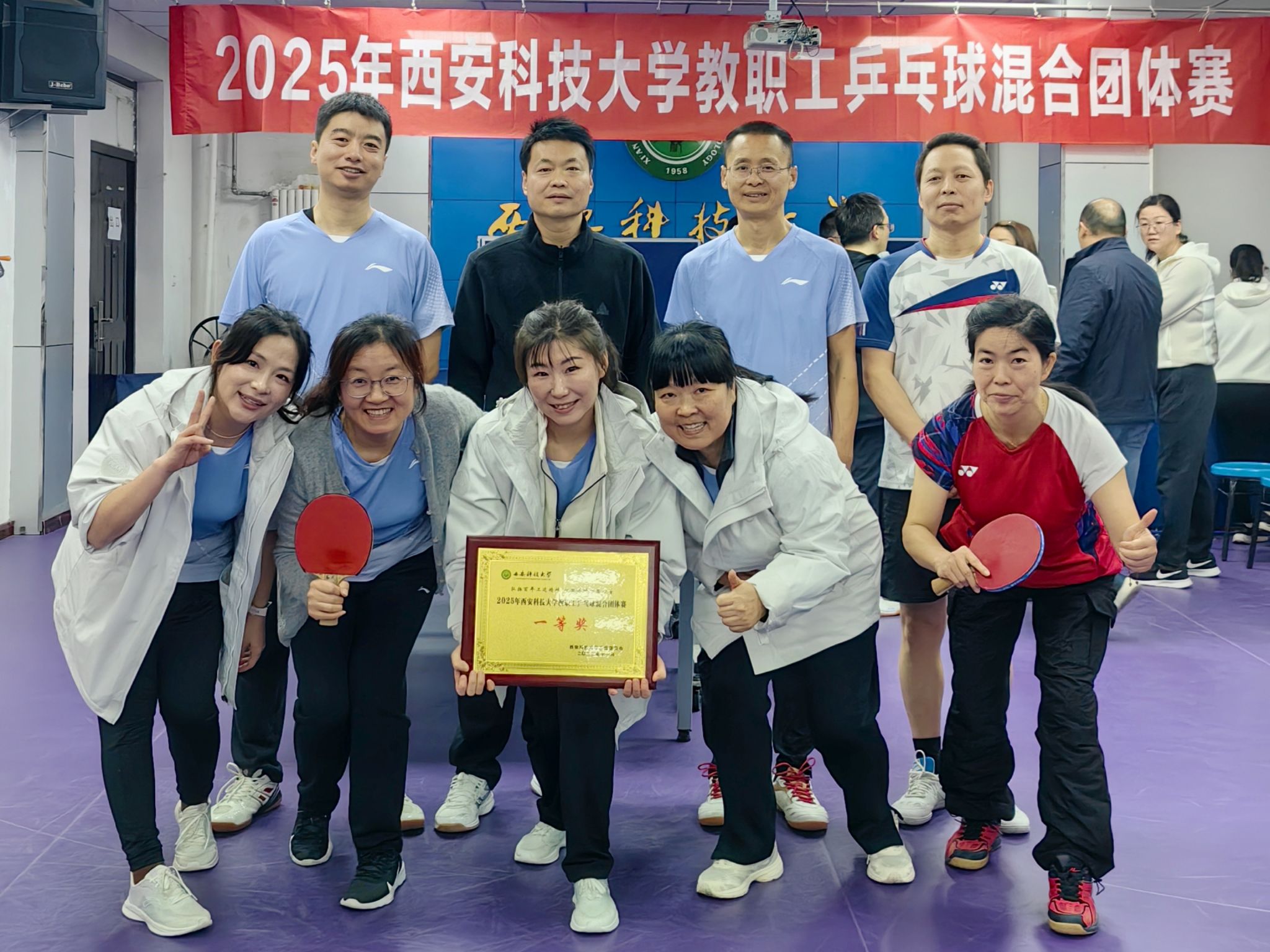 本次比赛以“丰富教职工业余生活、增强集体凝聚力”为宗旨,吸引了全校各院系十余支代表队同台竞技。赛场上,银球飞舞、掌声雷动,公司参赛队员将讲台上的儒雅转化为活力四射的运动健儿,展现出精湛的球技与昂扬的斗志,赢得现场观众阵阵喝彩。