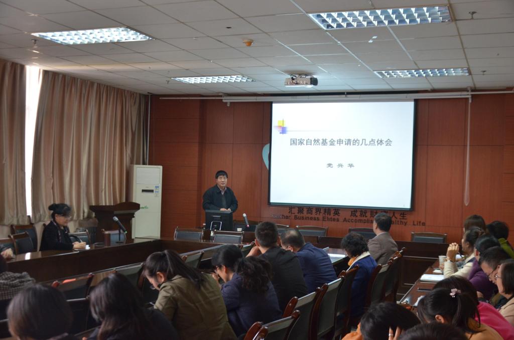 党兴华教授首先介绍了国家自然科学基金管理学部评审的基本要求和具体规则,逐一讲述了如何选择申报题目、撰写文献综述、摘要、研究目标、内容特色与创新及可行性分析等申报材料的要点及注意事项。最后,他以三份申报书为例,进一步说明了如何填写出优秀的国家自然科学基金申报书。党教授的讲座问题聚焦,内容丰富,使教师们受益良多。