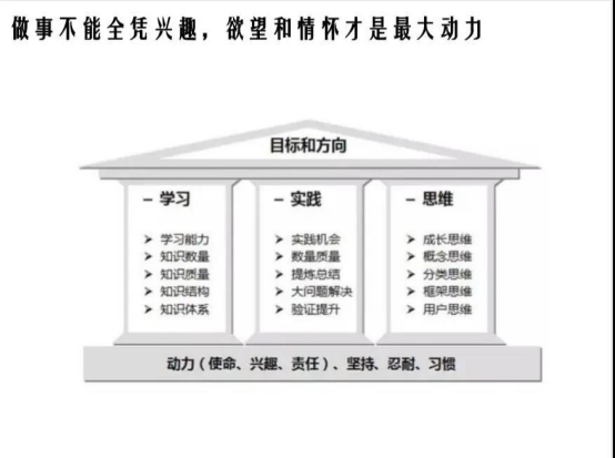 会议开始,邹老师就抛出“学习力就是竞争力”的强烈观点,也是企业、组织、个人最核心的竞争力。利用自身十几年的经历与体会,加以佐证观点的正确性,正如实践是检验真理的唯一标准。会议内容主要分为三个部分,以学习力为核心向外延伸剖析,从认知、欲望和情怀、学习方法三个方面着重讲解。