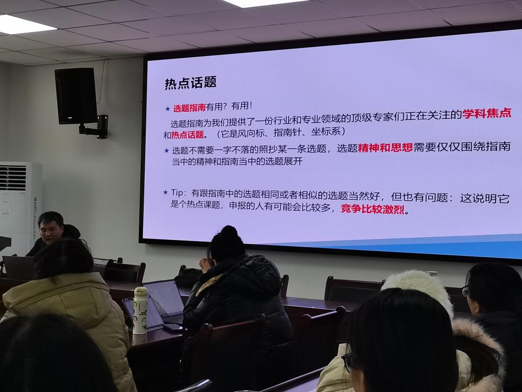 本次报告分为两个部分,首先是科研项目的选题,其次是科研项目的撰写。两位老师分别结合自身的具体案例,向参会的研究生们细致地分享了省部级科研项目选题与撰写中应当注意事项,令与会师生们收获良多。