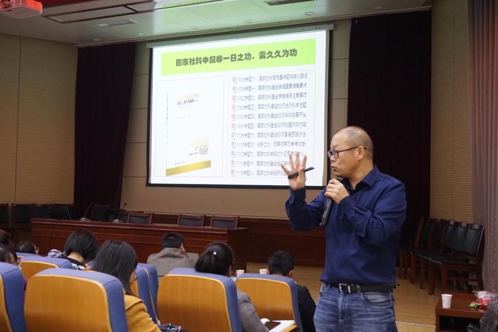 文传浩教授演讲风格幽默,用大量“接地气”的实例来增加讲座的趣味性,使大家更为清晰地理解讲述目的,从而真正学习到相关知识与经验。文教授从多个方面对国家社科基金的选题与申报进行了详细的讲解,主要针对选题方面提出了众多实用方法与技巧,例如:老题目+新做法、区域特色+创新题目等,同时主要以重庆、云南高校与社科院的项目选题为例,分别展开阐述,细腻地解读题目的精髓。