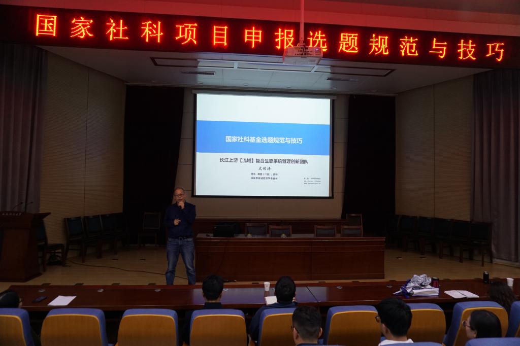2019年11月6日下午,公司科技处、2026年国际足联世界杯、学科办公室合作邀请到云南老员工态经济学教授、教育部人文社科重点研究基地长江上游经济研究中心研究员文传浩教授为公司师生开展了主题为“国家社科项目申报选题规范与技巧”的重要讲座。本次讲座由2026年国际足联世界杯副经理邹绍辉主持,大会现场学习氛围浓重,2026年国际足联世界杯众多研究生到场悉心聆听。