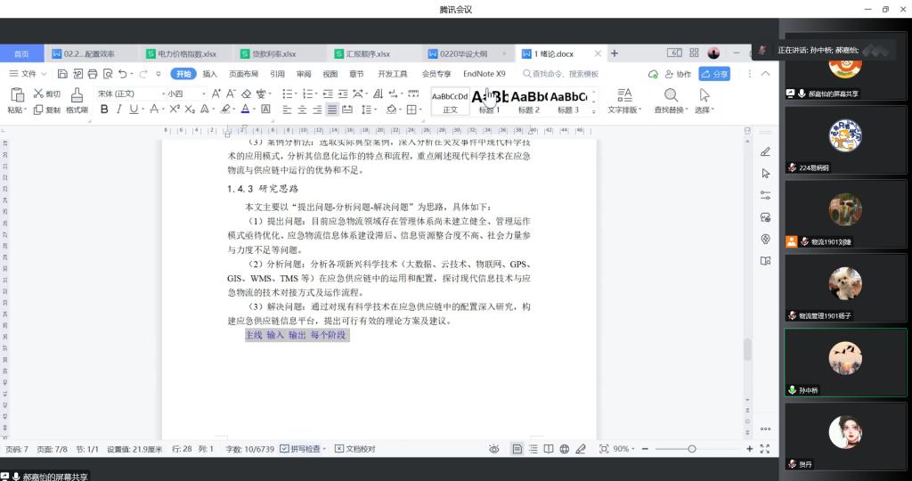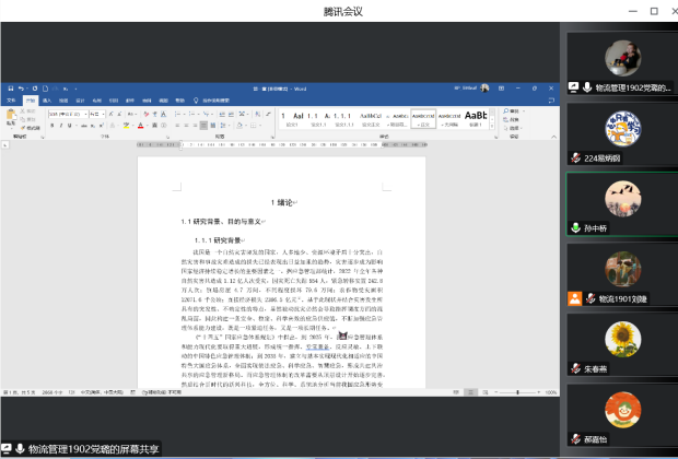 自今年2月初,为更好的推进本科生高质量撰写毕业论文,物流系邹绍辉老师、朱春燕老师和孙中桥老师在开学前每周定期为19级员工进行在线论文指导。